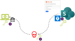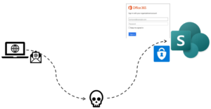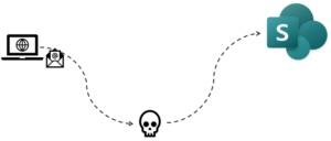 Een hacker stuurt een mail naar James.Bond@MI6.com, met een (fake) link naar SharePoint van MI6.Com.