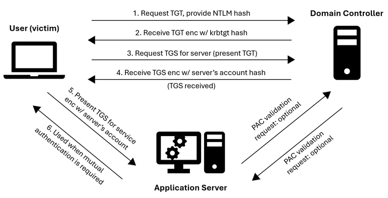 Aanvallers die toegang hebben tot het domein (zelfs met reguliere gebruikersrechten) kunnen een Ticket Granting Service (TGS)-ticket aanvragen voor elke service via de bijbehorende SPN. Dit ticket is versleuteld met de wachtwoordhash van het serviceaccount.
